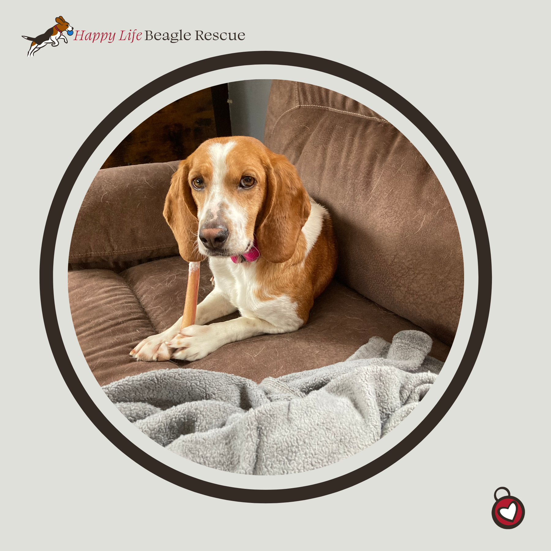 About: Tag is a sweet, friendly, cautious beagle. She LOVES other dogs, taking comfort and confidence from them whether it be playing at the dog park, saying hi on walks or snuggling with her two foster sisters. She enjoys her daily walks, is housetrained and rides well in a car. Tag feels most at ease with women and dogs showing her fun, playful, affectionate sides. When men are nearby she is much more reserved and cautious. That doesn’t stop her from sleeping in bed with her foster parents though. This sweet girl will need extra time to get adjusted to a new home, but once she does, she will thrive.